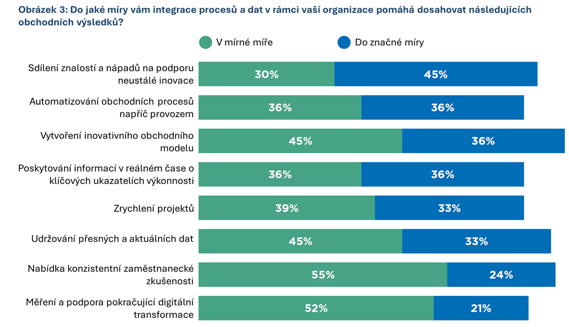 V případech, kdy jsou procesy a data integrovány, jsou zmiňovány lepší výsledky: přesnější a aktuálnější data, přehled o KPI v reálném čase a vyšší schopnost automatizace provozních procesů. Tímto způsobem je umožňováno funkční řízení objednávek: je snižován počet předávek mezi týmy a domněnky jsou nahrazovány sdílenou viditelností mezi front-office a back-office.